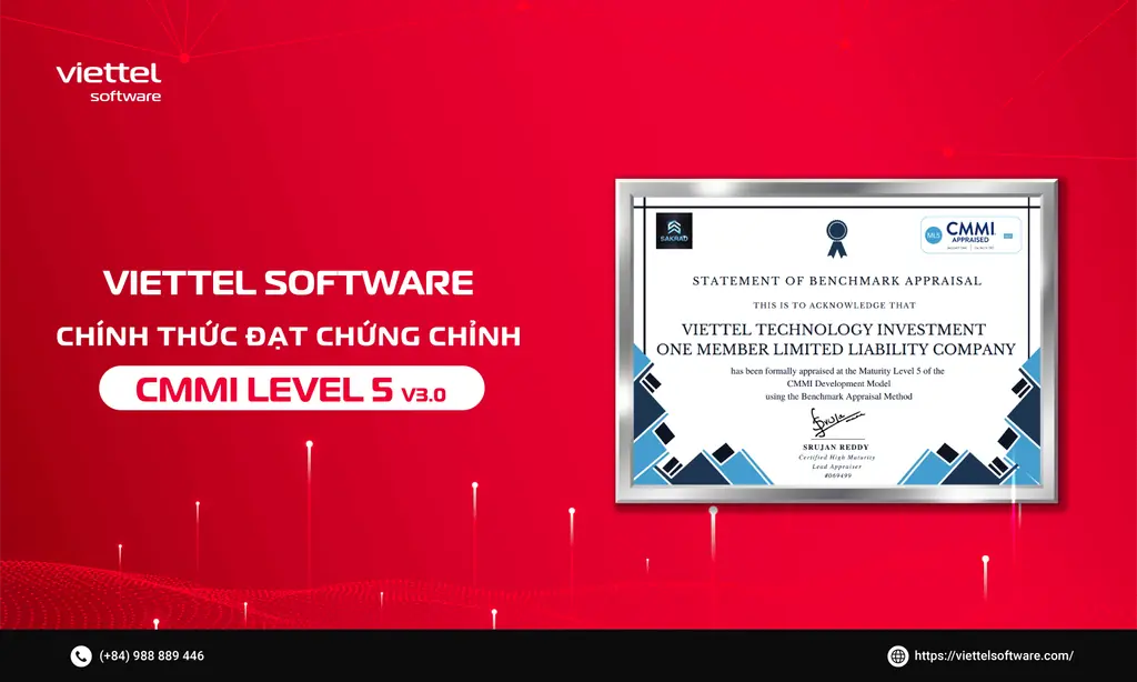 Viettel Software vừa chính thức đạt chứng chỉ CMMI Level 5 phiên bản 3.0, trở thành một trong số ít các công ty công nghệ tại Việt Nam đạt được cột mốc danh giá này chỉ sau 8 tháng chinh phục.